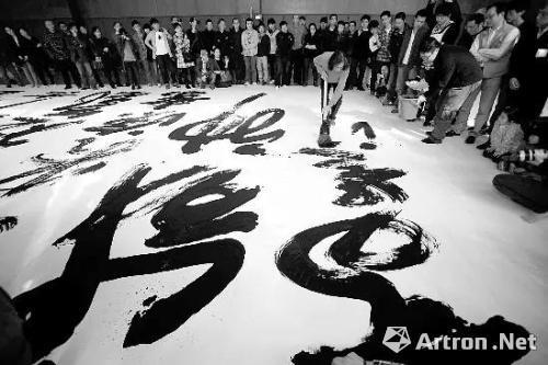2011年4月1日,王冬龄在中国美术学院一气呵成写就巨幅草书《心经》