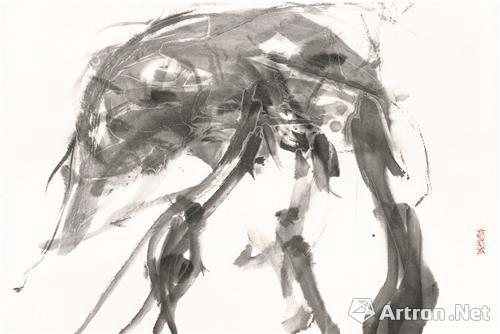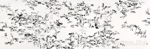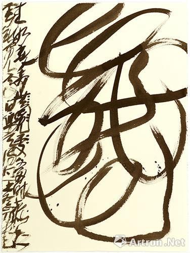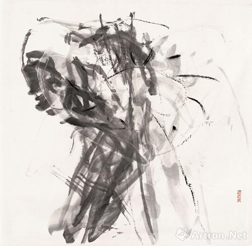 书法进入绘画,邱振中说自己是一个典型案例。作为接受纯粹书法训练的艺术家,他的水墨完全是书法的线条造型生发出来的?!笆榉ê突婊侵泄骋帐趵锉蝗嗣翘嘎圩疃嗟囊桓鲋匾拿猓橛牖庵止叵翟谡龌婊费荼涞墓讨惺导噬鲜怯械愣柙兜?,特别是在现代艺术里,但是在我的作品里边它们又重新找到一种新的联系方式。另外是在绘画里面运用线的方式,还有空间、构图的创作都跟草书有非常明显的关系。一幅画画下来,怎么出现图形,然后形成一个一个空间,再怎么组合完成变成一幅画的。”从一定程度上说,邱振中的水墨画也是书法的另一种“变形”。