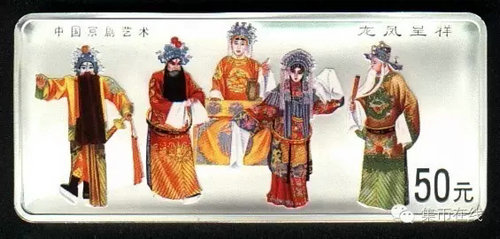 品种三:2001年发行的“龙凤呈祥”五盎司彩银错币。错版情况:第一错处为其背面左上角铸有的“中国京剧艺术”中的“剧”字,在“剧”字的“尸”字边旁下面的“古”字少了一竖;第二错则是《龙凤呈祥》彩银币正面的铸造年份是2001年而不是2000年,由此出现了《龙凤呈祥》彩银币“鉴定证书”上的年号与实物上的年号不一样的情况。