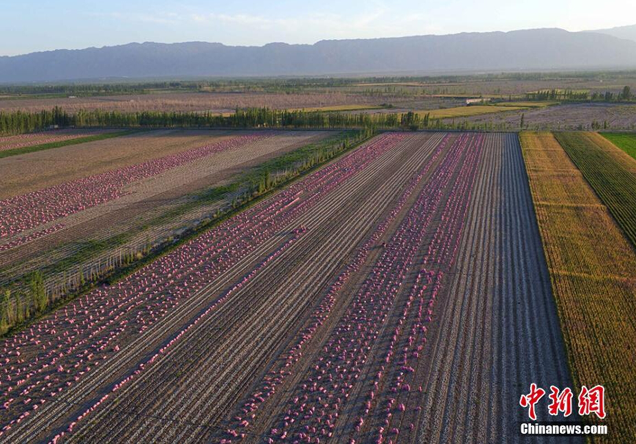 九月金秋时节,物产富饶的新疆天山南北进丰收季。位于天山南麓的新疆巴州焉耆县、和静县等县市的农民种植的籽用葫芦、玉米、辣椒、洋葱等农作物相继进入成熟期,当地农民加紧采摘、收获,构成一幅多彩秋收图。图为新疆天山南麓色彩绚烂的秋收美景。确·胡热 摄