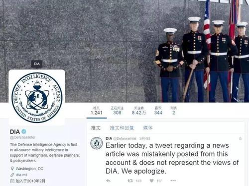 PS:那个发推特讽刺中国的美国国防情报局,后来很快删帖了,还更新的推文道歉,称之前的贴子是被错误地发出,不能代表国防情报局观点。