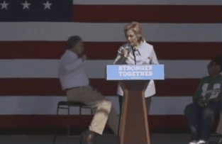 图为希拉里咳嗽时喝水