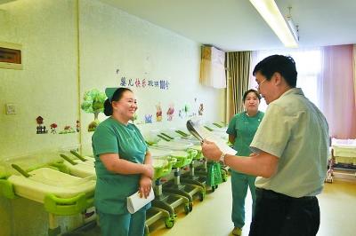 评审专家在新妈妈母婴护理院对护理人员进行现场考核。
