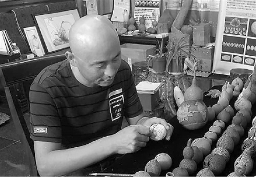 “2001年,有一个朋友过生日,我想不出送什么礼物,正好看到电视里在介绍蛋雕作品,所以自己也想去试一试?!?/p>