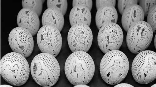 何永江说,失败率最高的当属吴用,“吴用的手里拿着一把扇子,要勾勒出他的羽扇纶巾,很不容易。雕刻吴用失败了三次,到第四个蛋的时候才算成功了?!?/p>