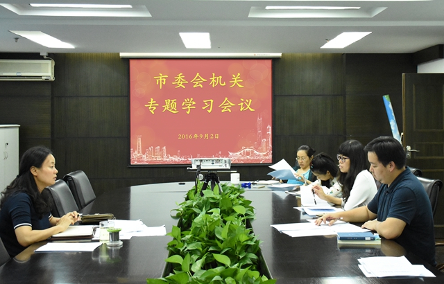 9月2日,深圳市委会机关召开专题工作会议,传达学习中共深圳市委书记马兴瑞在2016年市各民主党派、工商联负责人和无党派代表人士暑期恳谈会上的讲话精神,并就如何贯彻落实马兴瑞同志在恳谈会上对党派机关提出的要求展开讨论?;嵋橛墒形崦厥槌ひ洞褐鞒?,机关全体工作人员参加。