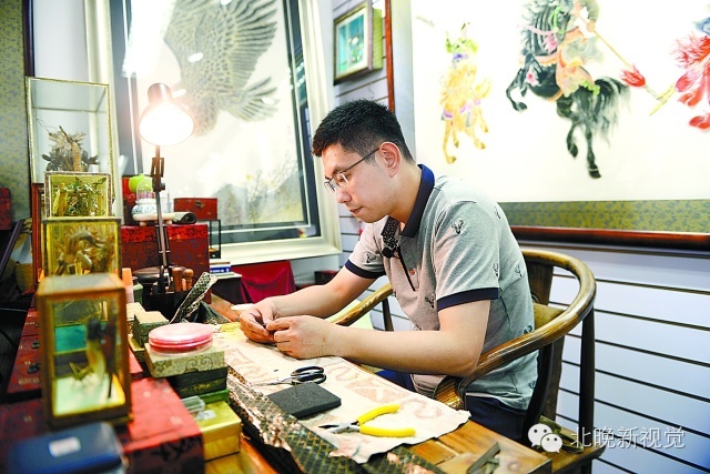 经过一年多的精雕细琢,长达两米的草编巨制“北海九龙壁”终于完工,耳濡目染下,刚上小学的裕光磊已经对草编技艺心生好感。