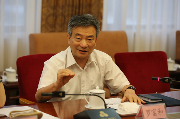 罗富和就加强贫困地区村级组织的建设和保障、完善产业化扶贫、提升贫困区县级医疗的服务水平等问题,与专家们亲切交流。
