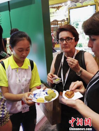 参观者慕名前来品尝“面具”月饼?!≈有馈∩?/strong>
