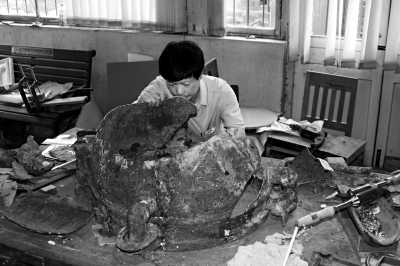 王有亮经常需要不厌其烦地尝试,将碎片拼凑成重器。