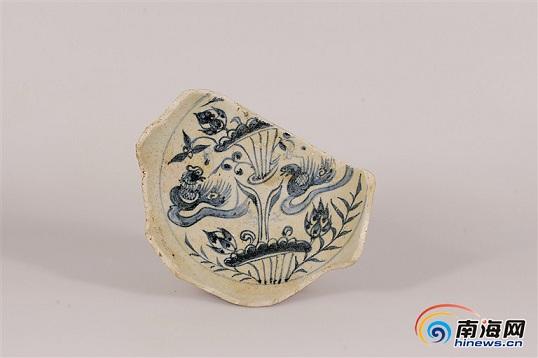 他特意提到了魏希望捐赠的一块陶瓷碎片。陶瓷碎片在南海海域出水文物中再常见不过,可这片不大的青花瓷碎片“信息量十足”,有力佐证了古代中国同阿拉伯国家通商往来的历史。这片陶瓷碎片上绘有精美的鸳鸯图案,但更为重要的是上面4个“波斯为记”青花字。