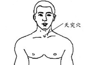 天突穴,在颈部前面,两锁骨内侧、胸骨柄上缘有一个凹陷,这就是“天突穴”。闲暇时经常用大拇指进行点揉,可起到养阴生津、润肺化痰的功效。