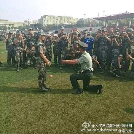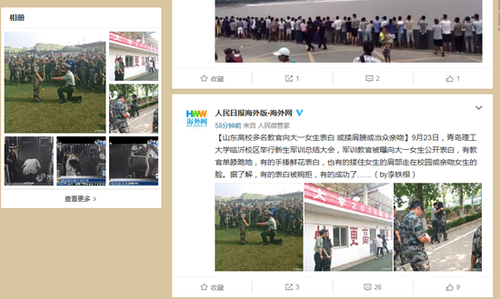 山东一高校多名教官向女生表白 或搂肩或当众亲吻