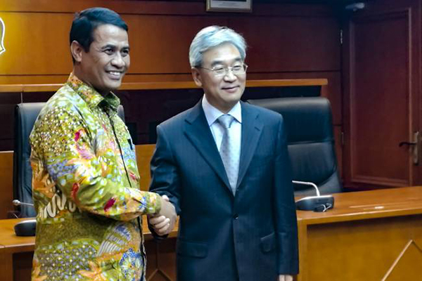9月19日,九三学社中央副主席、农业部副部长张桃林在雅加达会见印度尼西亚农业部长阿姆兰?苏莱曼(Amran Sulaiman),双方就加强合作交换意见。