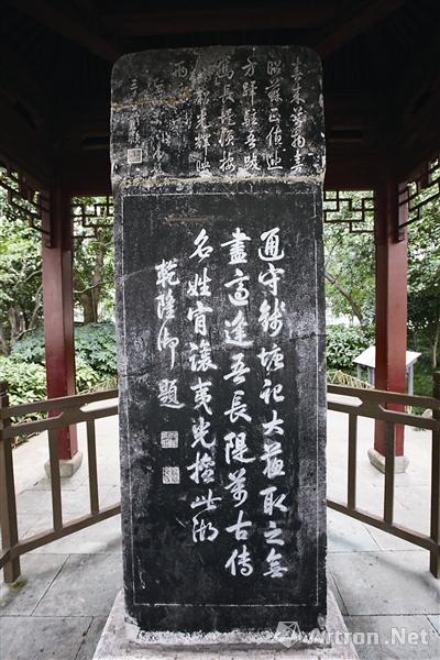 明嘉靖年间,杭州知府陈珂因宋代原碑残剥而重新摹刻,碑文楷书,双面刻,每面7行,原有4石,流传至今尚存3石,缺第2石?!扒舯碇摇毕治骱爸唬谐敲婧缇凹?。