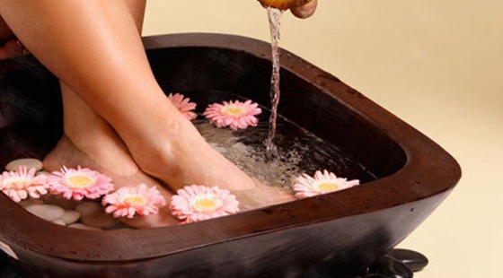如果条件允许,泡脚最好用较深、底部面积较大的木质桶,能让双脚舒服地平放进去,而且最好让水一直浸泡到小腿。