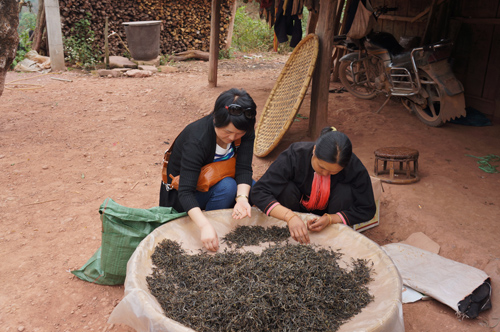 韩炜在原生态古寨少数民族择茶 网络图片