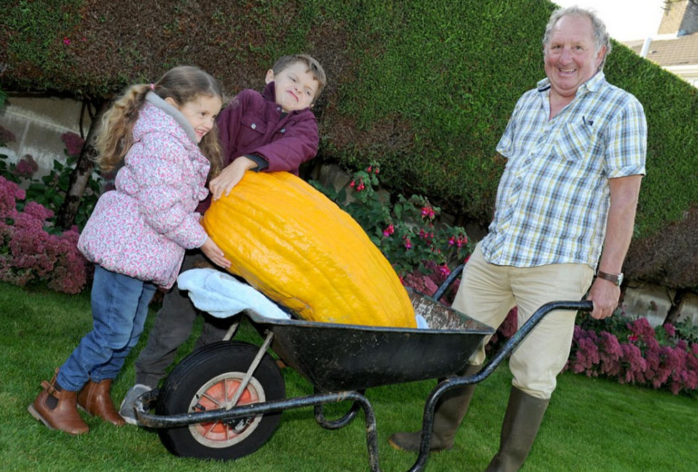 需要动用手推车才能装走的西葫芦。据说,这些超级蔬果的成长只需要四到六个星期,“它们每个小时都在变大”。