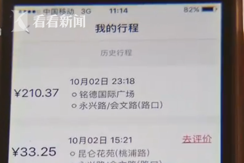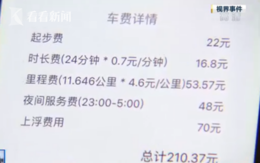 下车后,徐先生才发现,自己的账户里竟然被扣除210元车费,而白天同样的里程,车费才33元。