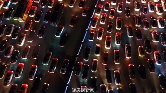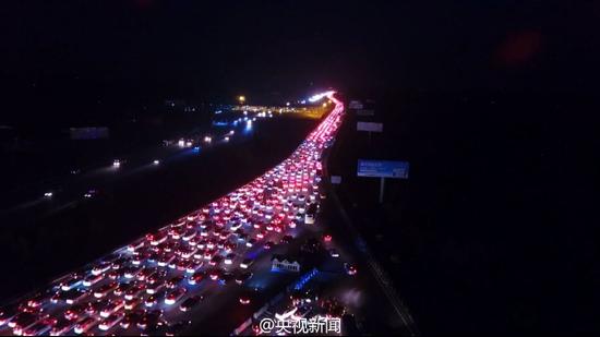 10月6号晚的京港澳高速。图片来源:央视新闻