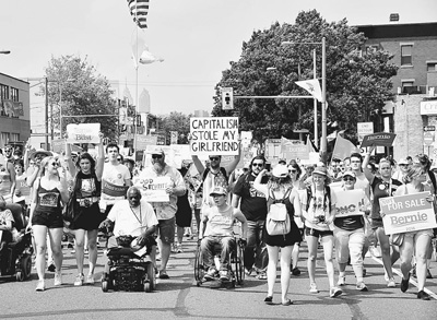 美国民众在费城街头集会抗议资本主义。 本报记者 章念生摄 |