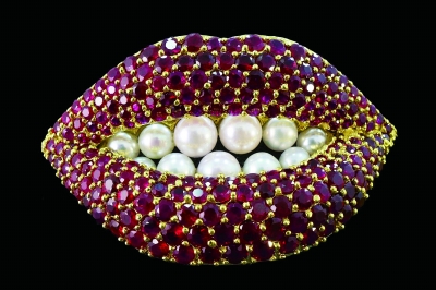 最为吸引观众的是文艺复兴时期及新艺术时期的饰品,飞翔的丘比特吊坠项链、狮子形吊坠、舞女吊坠、橡果形胸针、蜜蜂形胸针、蝴蝶形胸针、酒神女祭司头像胸针等,多选用造型富于变化的巴洛克式珍珠进行大胆构图,将自然寓于艺术作品之中,用不同形状的选材刻画出巧夺天工的动物、植物、人物形象,使珍珠的表现力达到了前所未有的高度。其中,萨尔瓦多·达利设计的养殖珍珠与红宝石唇形胸针,彰显了艺术大师大胆的设计视角和独特的装饰手法。