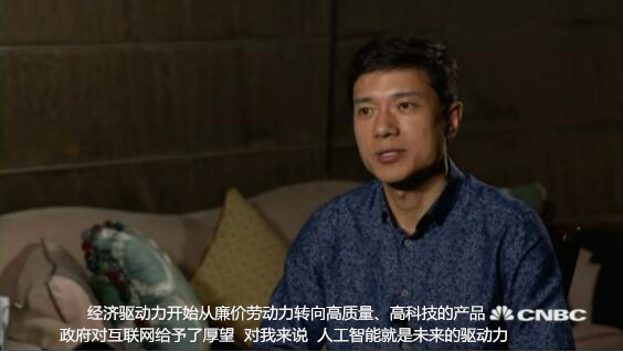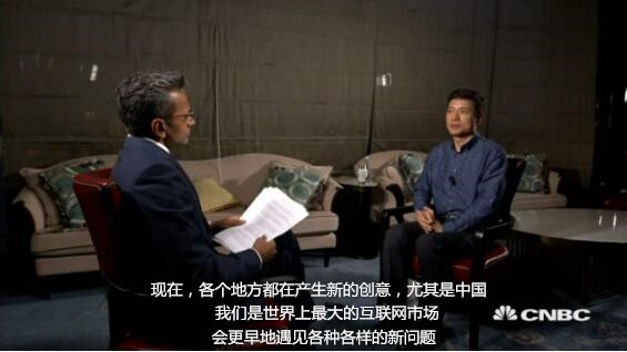 CNBC主要就中国经济转型、政策法规与市场发展,以及中国创业创新环境区别于硅谷的地方等进行了采访,此外还提到了人工智能将对互联网行业乃至整个经济格局的变革。