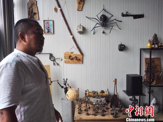 废旧汽车零件、损毁的铁锤、扭曲的建筑垃圾……在很多人眼里这也许是一堆不起眼的废品,但49岁的昆明男子李华文却变废为宝,将它们做成艺术品。