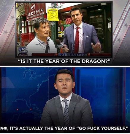 【环球网综合报道】美国??怂剐挛偶钦呶痔厮褂泄嘏υ蓟旱娜杌煞么シ⒅谂肆钛且岱吲灰淹?,也受到主流媒体与各族裔网友的抨击。据美国中文网10月7日报道,当地时间周四晚,“每日秀(The Daily Show)”华裔记者罗尼·成则在节目中对沃特斯和福克斯新闻做出了犀利反击,让不少网友直呼精彩。
