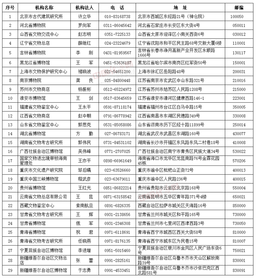 国家文物局指定第二批29家涉案文物鉴定评估机构