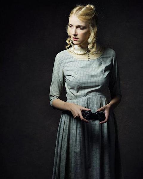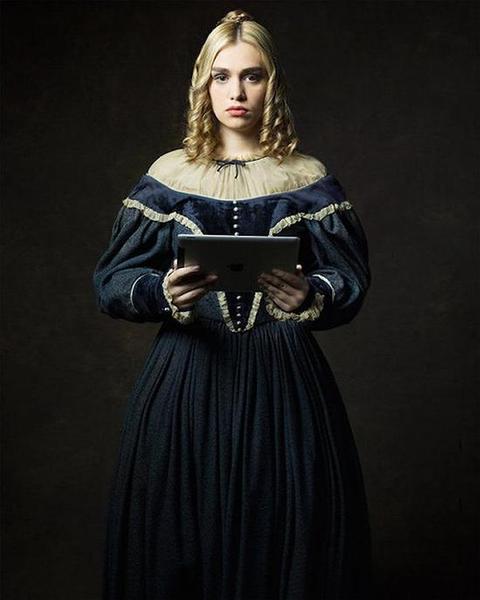 洛杉矶摄影师孟庆健(Qingjian Meng)最近推出了一个名为《淘金热》(Gold Rush)的摄影系列。这个有趣的摄影系列包含了19世纪人物的肖像照,照片中的人物正在使用各种各样的现代科技产品,包括平板电脑、苹果手表、电子香烟、蓝牙耳机以及无人机。