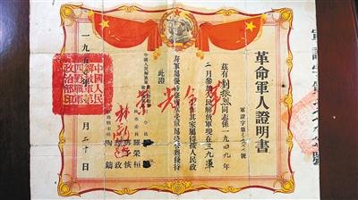 八旬老人展示66年前革命军人证明书 纸张已泛黄