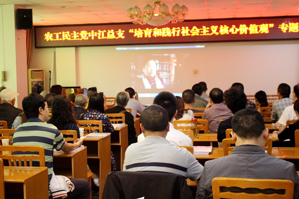 2016年9月27日,农工党中江总支为了切实推动学习实践活动深入开展,举办了“培育和践行社会主义核心价值观”专题学习活动。