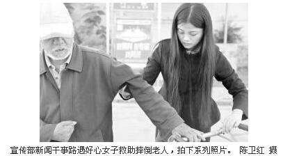 老人摔倒遇好心情侣 女子扶老人照片被传网络