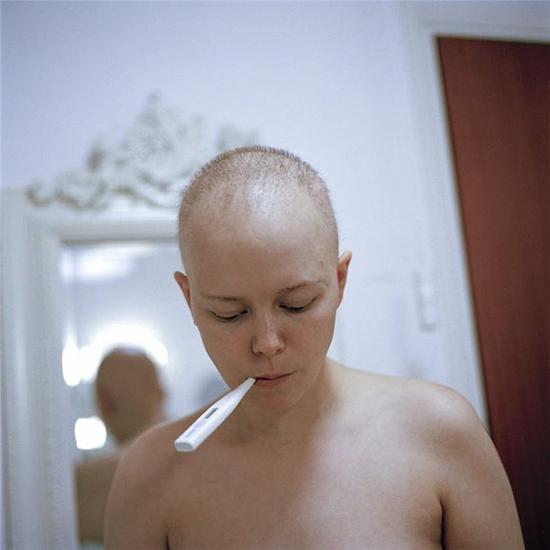 因此就有了这个事无巨细展现Hannah化疗经历的摄影作品。只有一件事除外?!癏annah的性格就是这样,她幽默地看待一切。因此她也不希望把癌症展现得那么严肃可怕,癌症一样可以拍的很有趣,这样她就自然可以自嘲取乐了。Hannah不想像绝大部分以癌症为主题的摄影作品一样,以黑白为色彩基调。”