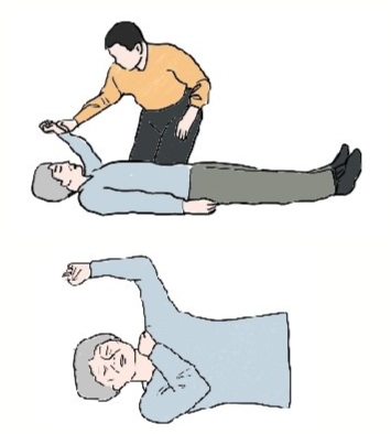 1. 先将患者一侧上肢抬起放在头一侧,将另一手掌放在对侧肩膀上;