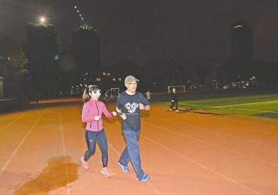 大川(黑衣)和志愿者小七一起跑步