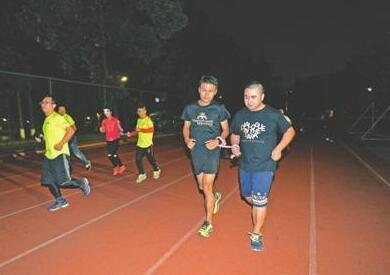 昨晚七点半,记者在四川大学东区操场见到了大川和他的朋友剑哥。这是“黑暗跑团”的一次常规性训练,东湖公园的常驻跑团“七七跑团”已在那里等候。热身完成后,团员分成两组,分别是视障者、前方的清障者、身边的陪跑者和伴跑者。这样3人陪着一人跑步的配置,是保证视障人士安全所需要的标配,大川说。