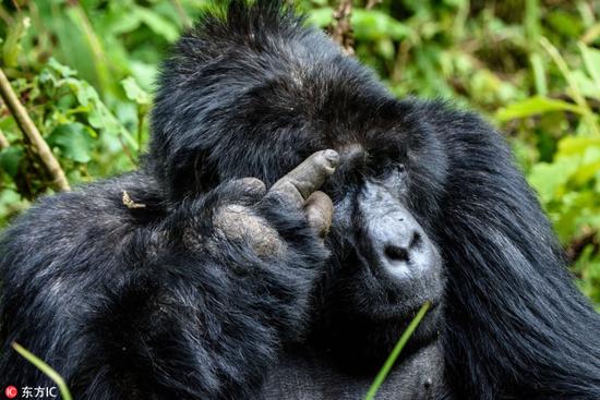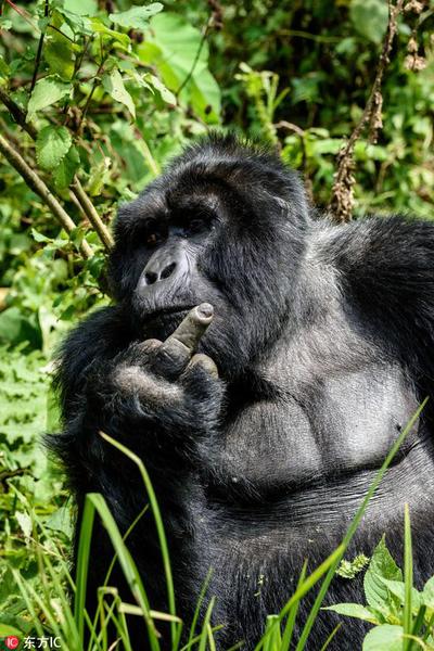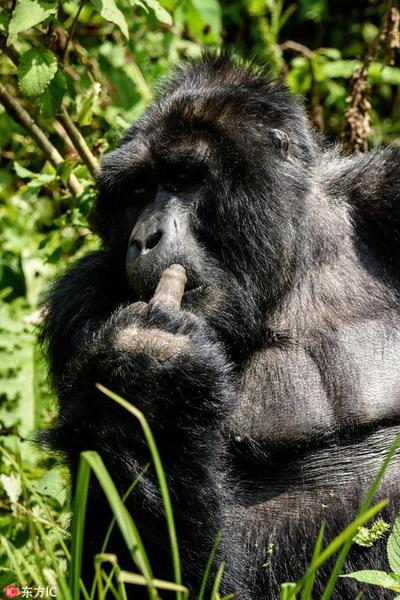 乌干达布温迪森林公园,英国退休老人兼摄影爱好者Ken Haley和几名摄影师在当地拍摄到一组非常搞笑的画面,画面中一头6英尺的巨型大猩猩对着镜头竖起了中指,看着令人是忍俊不禁。