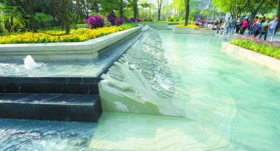月亮湾重现水景观 旧京浮雕掩映于花树水景间