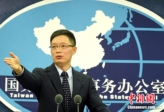 10月12日,国台办在北京举行例行记者会,国务院台办发言人安峰山答记者问。 中新社记者 张勤 摄