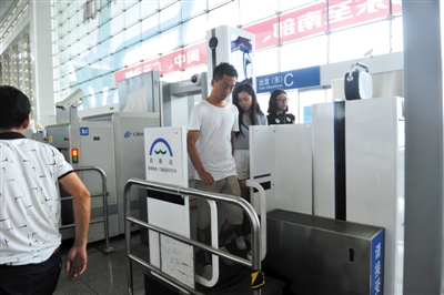 7月12日,四川省成都市,成都火车东客站,进站旅客正通过安检仪进行安检。