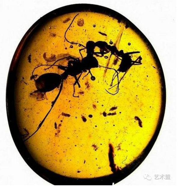 目前,缅甸境内发现的一枚琥珀中真实记录了1亿年前两只蚂蚁之间的战争,它们的颚部仍咬合在一起,仿佛时间都停止了下来,当树胶落在它们的身体上,完全将它们包裹起来。