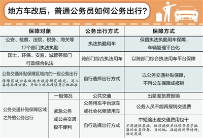 此外,相关负责人还表示,对目前地方车改中发现的问题,诸如车辆处置不及时、保留用车缺少使用管理办法、个别基层一线执法执勤车被“截留”等,要在继续深入改革中督促地方解决。制图:郭 祥