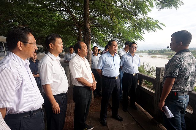 10月13日上午,刘晓峰、龚建明一行考察瑞丽姐告段界河治理工程