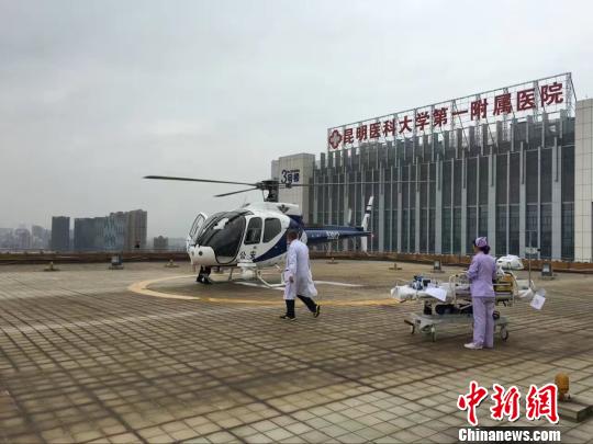 这是昆医附一院首次启用该院住院楼顶层?;?,该院也成为了云南省内首家开展直升机医疗救援工作的医院。
