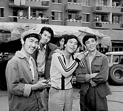 姜树森(右二)在电影拍摄现场。资料图片