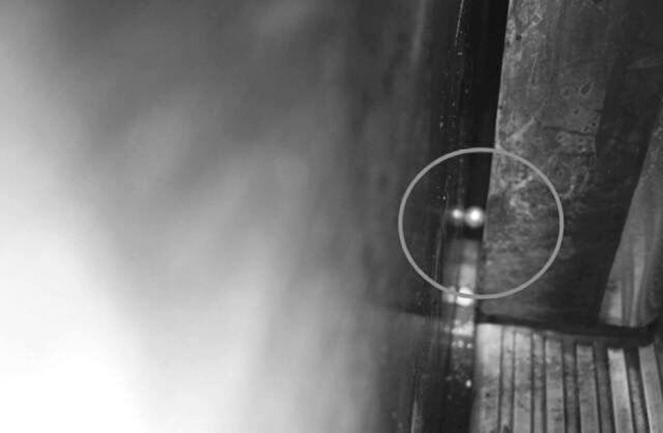 地铁车厢门下方导轨里的珍珠。