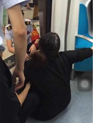 当列车到达十里河地铁站时,黑衣女子所在的车门打开,几名地铁工作人员已经在站台上等候,但是让所有人意外的是,这名女子突然一屁股坐在了门口,导致列车车门无法关闭。