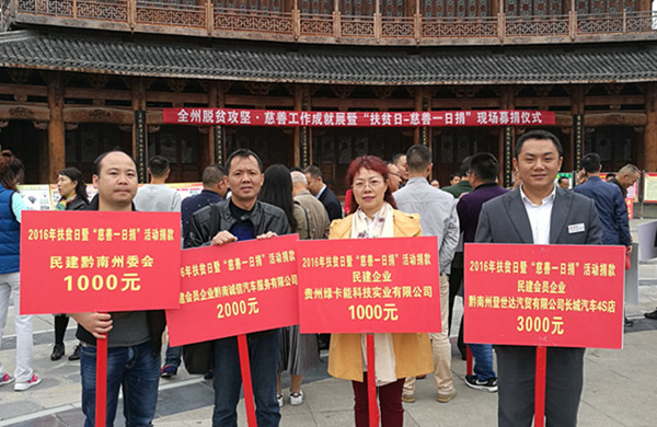 黔南州已持续3年开展“扶贫日”活动,捐款用于贫困村基础设施建设等重点领域,扎实推进各项民生工程,受帮扶的贫困村基础设施和贫困人口基本生产生活条件明显改善,教育、卫生、养老、残疾事业等领域慈善公益项目深入实施,取得了一定成效。